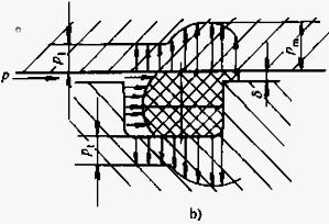 將 O 形圈安裝在溝槽內(nèi)時,要受到拉伸或壓縮。若拉伸和壓縮的數(shù)值過大,將導(dǎo)致O形圈截面過度增大或減小,因為拉伸1%相應(yīng)地使截面直徑W減小約0.5%。對于孔用(內(nèi)壓)密封,O形圈最好處于拉伸狀態(tài),最大允許拉伸量為6%;對于軸用(內(nèi)壓)密封,O 形圈最好延其周長方向受壓縮,最大允許周長壓縮量為3%。